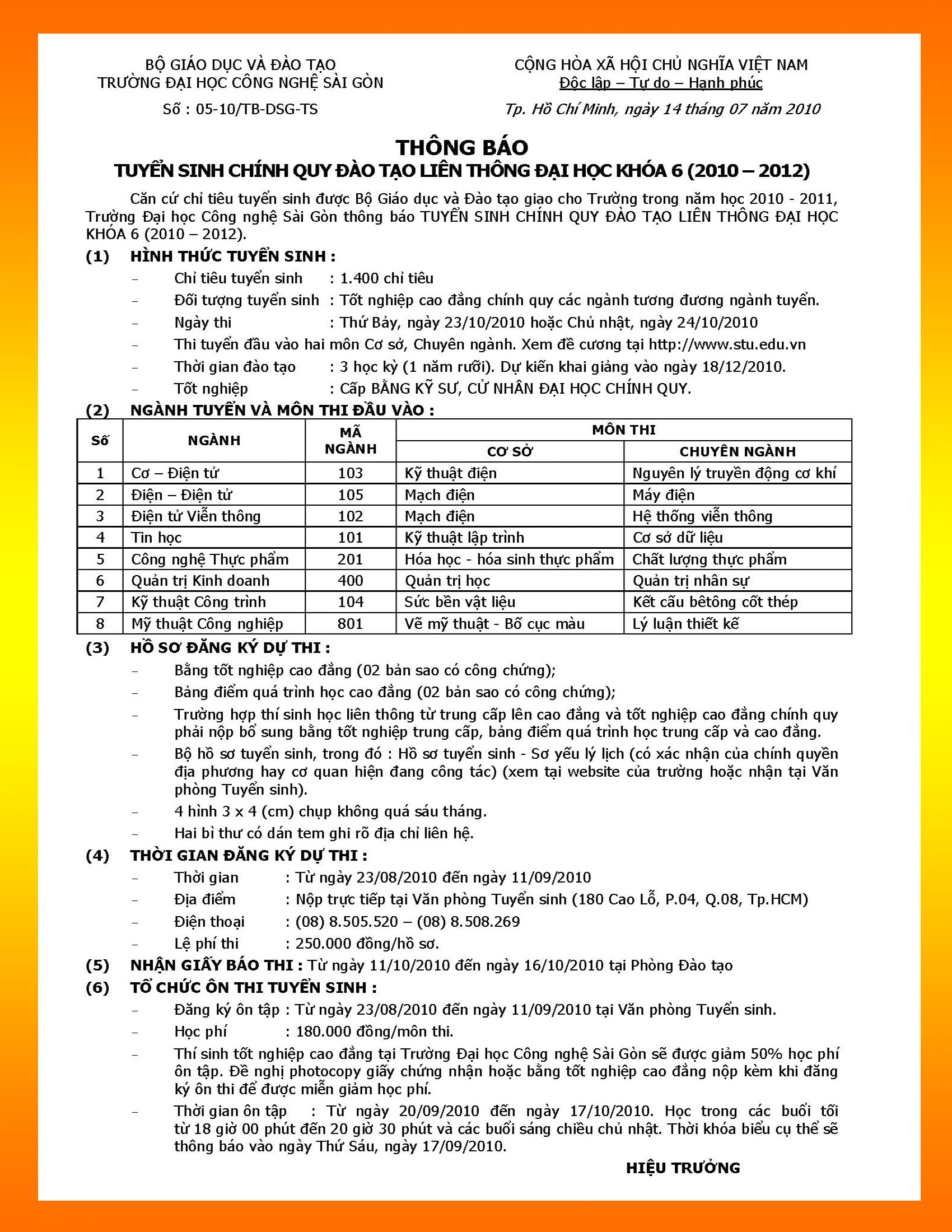 Thông báo về tuyển sinh chính quy - hệ đào tạo liên thông đại học khóa 6: Xem chi tiết tại đây